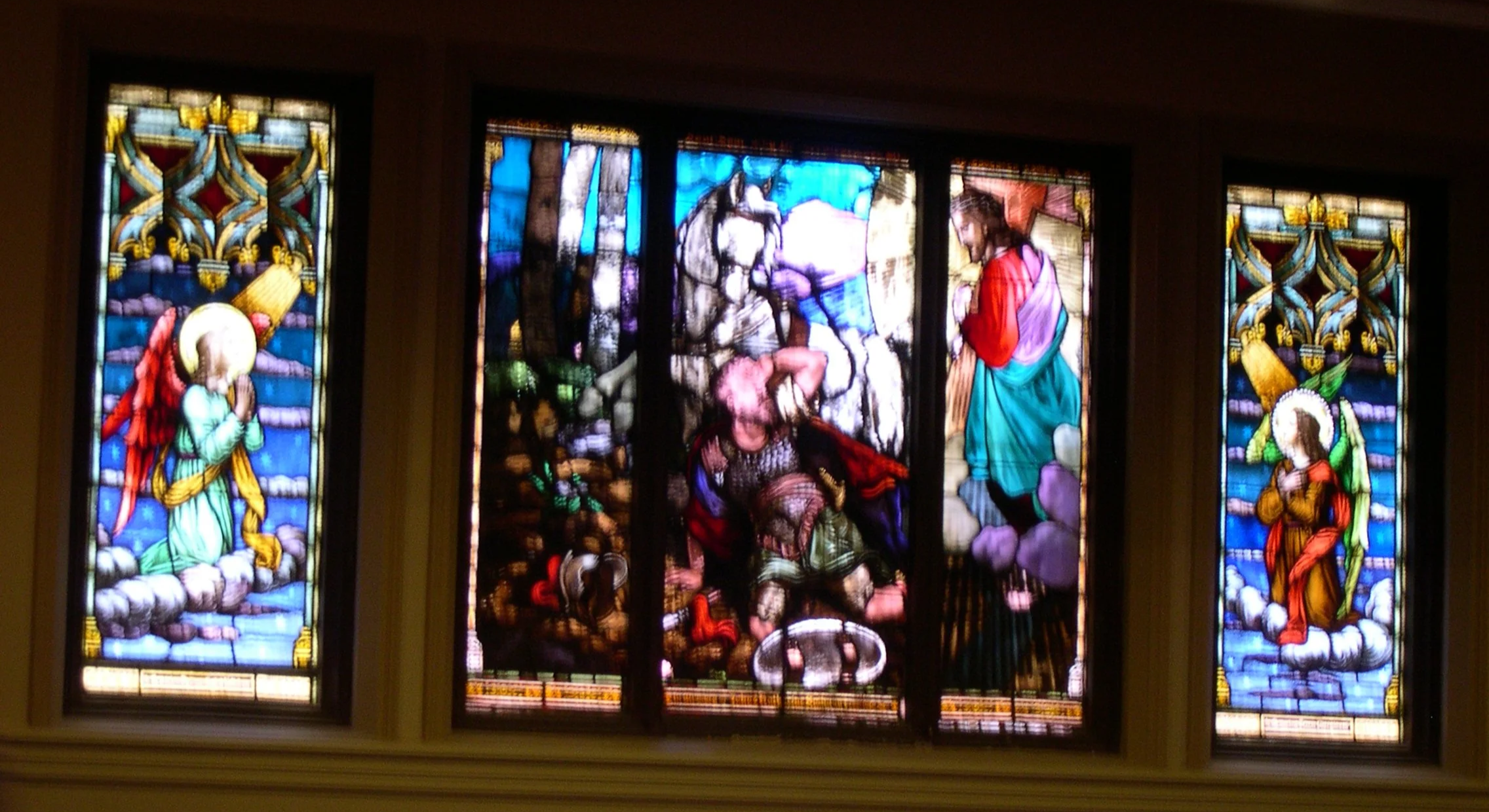 After over a year of working on our time stained window, on January 25th weekend, we unveiled the restored version. Time had blurred the image and knock out pieces of the stained glass. Through careful matching colors and enhancing colorings, our Conversion of St. Paul window has been restored to her glory days.